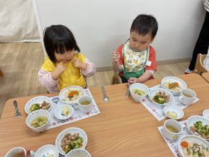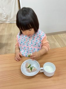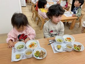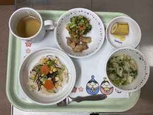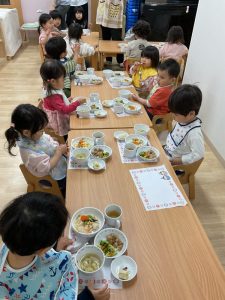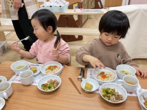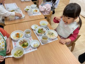 給食タイム♪かわいいひな祭りのランチョンマットに可愛い給食♪
