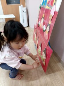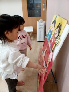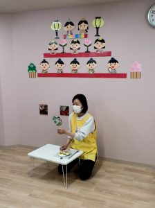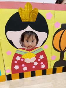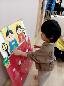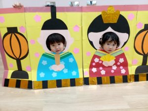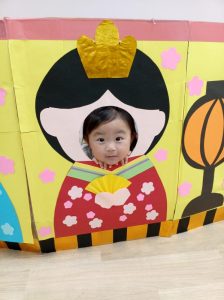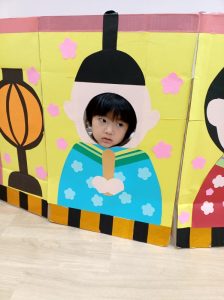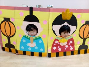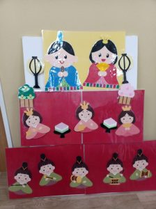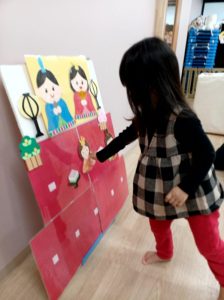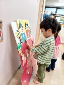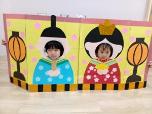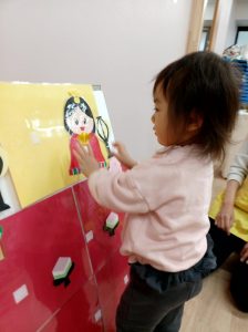 まずは、ペープサートでひな祭りの由来のお話しを聞きました。