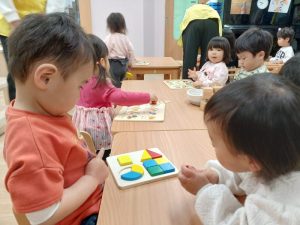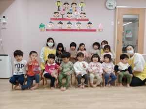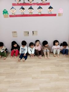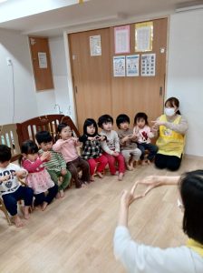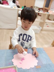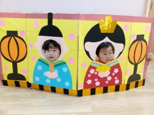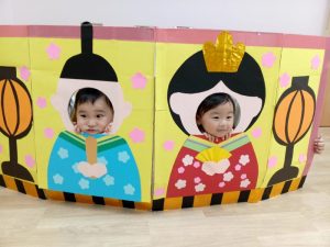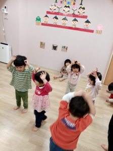 ひな祭りの手遊びでは、ひなあられ、ももの花、ひし餅を作って遊びました♪
