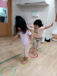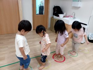 輪っかをジャンプ!ほし組さんも真似っこ♪