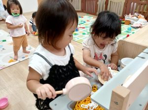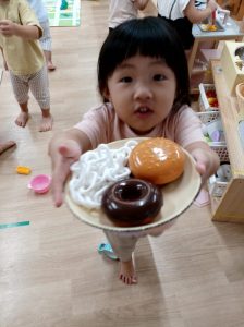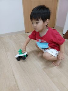 大好きな車を走らせたり、今からお人形の寝かしつけ!