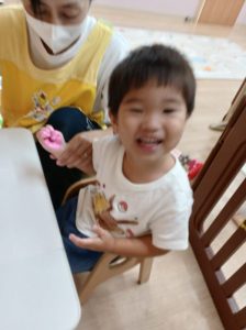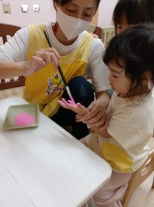 「くすぐったいよ〜」「絵の具楽しい♪」