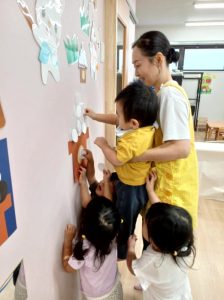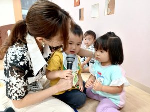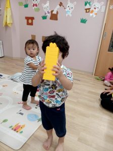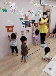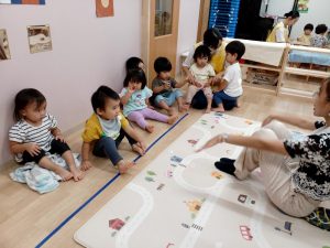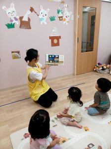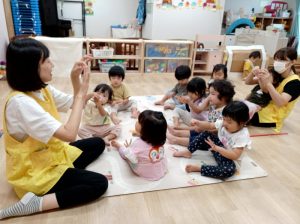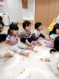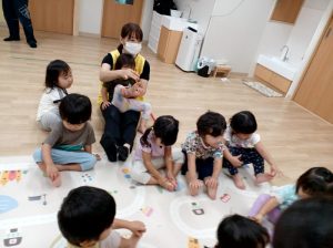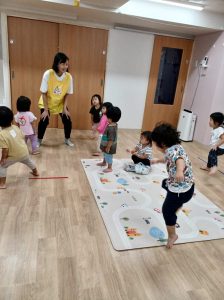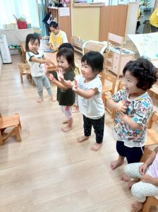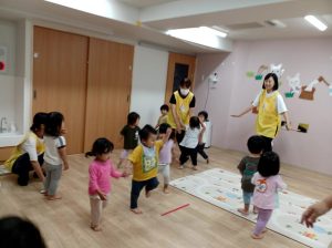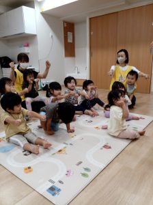 次はつき組さんが参加します。英語のお歌に合わせて踊ったり、一緒に発音♪