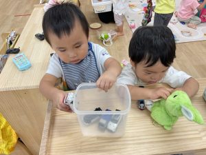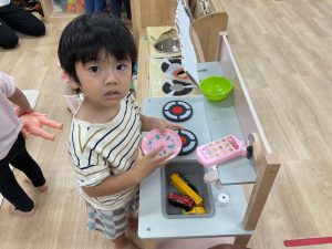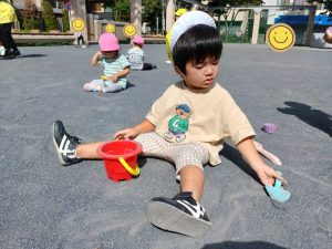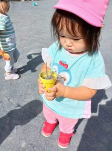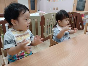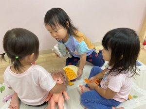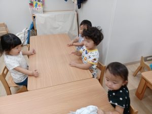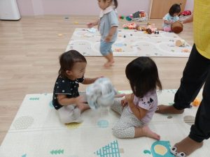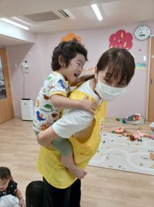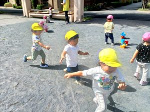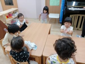 つき組さんの遊ぶ姿を見て、ほし組さんも一緒にしっぽ取りゲーム!