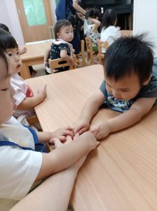 先生とお友だちのお手てをぎゅっ!!