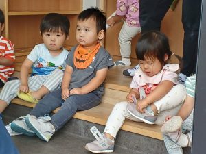 帰ってきてからは、自分たちで靴と靴下を脱ぎます!