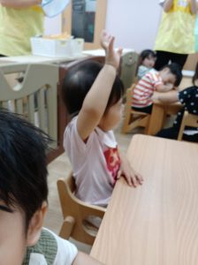 ほし組さんも手をあげてお返事!