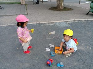 公園では砂遊び!
