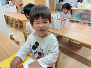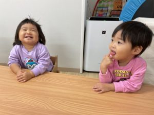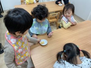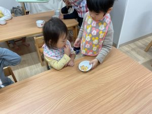 お当番さんは、おやつを作ってくれます。「どうぞ!」