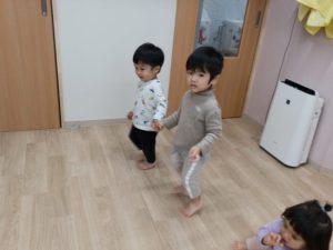 お友だちや保育者と手を繋いであるこ〜♪