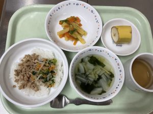 ビビンバ、じゃがいものきんぴら、スープ、バナナ