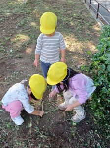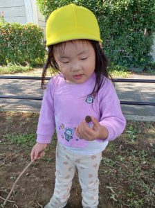草むらで小石を発見!「ナゲットみたい!」