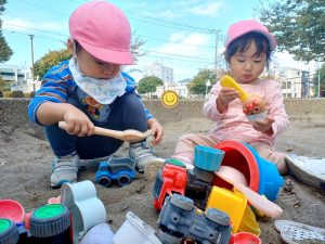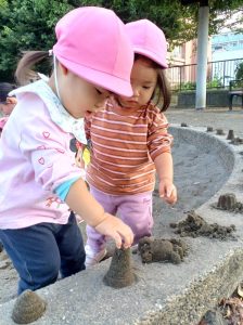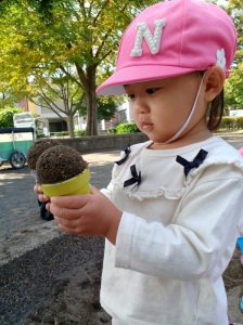 お砂場遊び、みんな真剣は表情で黙々と遊んでいます!