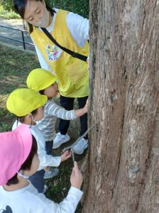 木の表面、ザラザラだ〜!