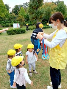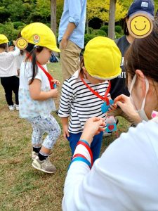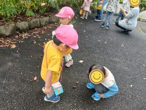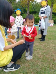 自由遊びの時間では、広場をかけっこしたり、どんぐり拾いを楽しみました♪