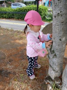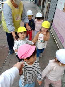 つき組さんは友だちとの手繋ぎだけで歩く練習!