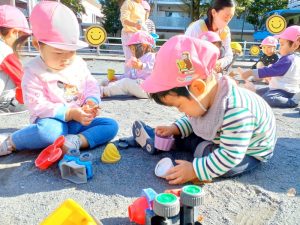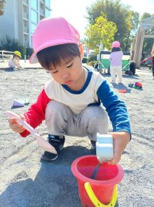 公園では砂遊び!