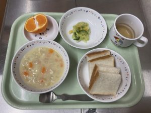 食パン、クリームシチュー、サラダみかん