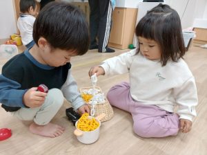 お友だちに「はいどうぞ!」「一緒に、食べよう!」