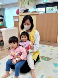 先生のお膝に座る!と集まってきた子どもたち♪