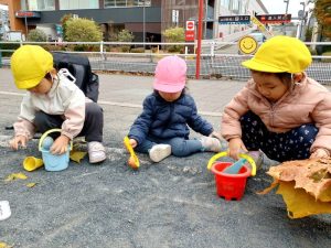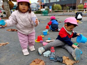 公園では、砂遊び!