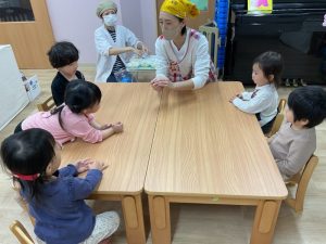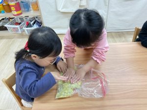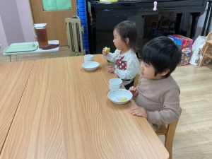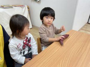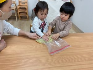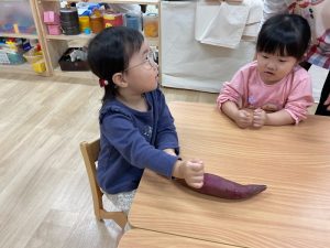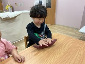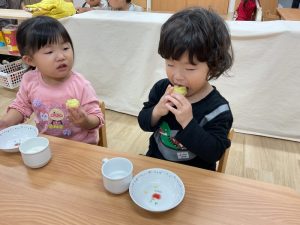 つき組さんは、午後のおやつの「茶巾絞り」に挑戦しました!