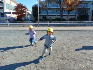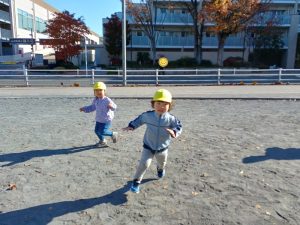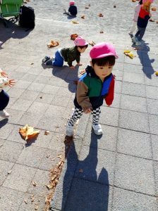 かけっこをしたり、落ち葉を拾ってみんなで遊びました♪