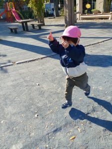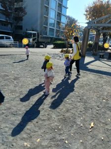 かけっこをしたり、落ち葉を拾ってみんなで遊びました♪
