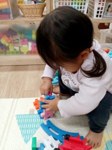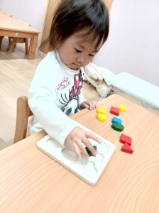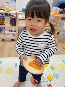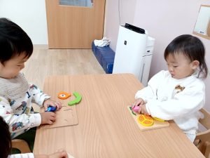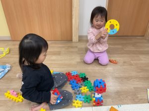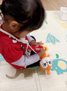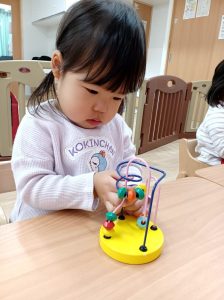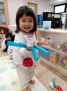 「こうやって・・・」「できた~、お指が長くなったよ。」