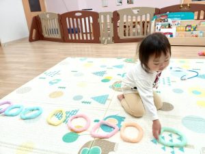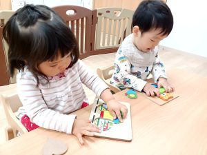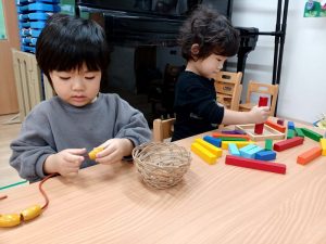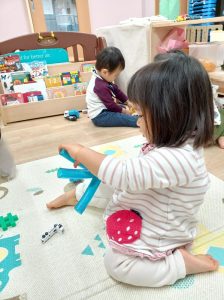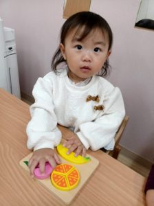 「こうやって・・・」「できた~、お指が長くなったよ。」
