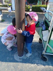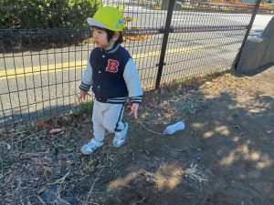 ペットボトルの引き玩具をガラガラ引きずりながら、公園を探索‼︎