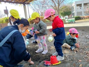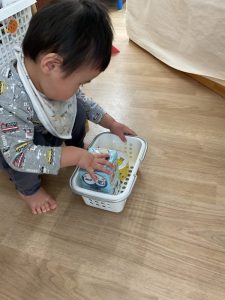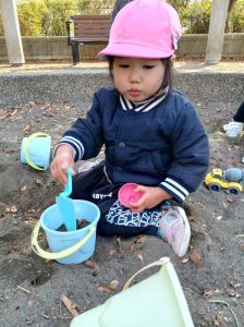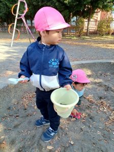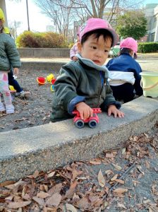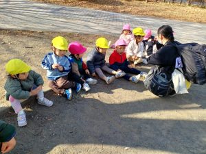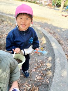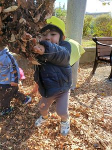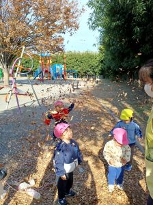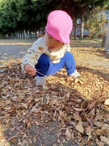 落ち葉を拾ってみよう♪カサカサ、面白い音がするね。