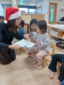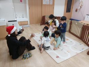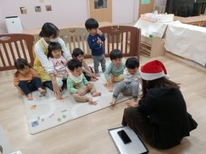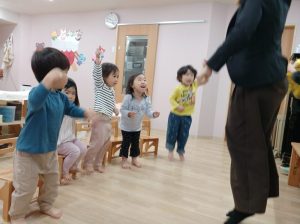つき組さんも英語の歌でスタート!「my name is、、、」上手にお名前言えたよ♡