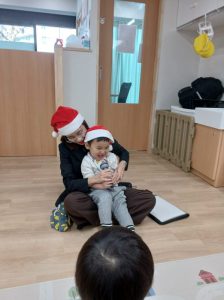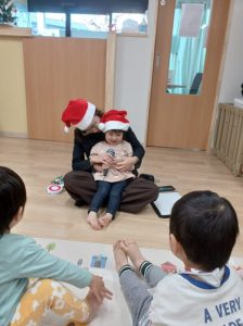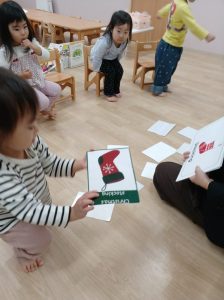 クリスマスの絵カードを探したよ!「何かな、、?」「あ、靴下だー」