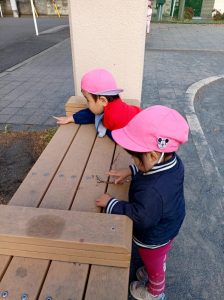 「ありさん、いたよ。」「みて、みて、ありさん♪」