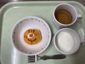 アンパンマンのにんじんケーキ、牛乳