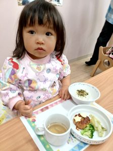 誕生児には、お誕生日のランチョンマットでお給食!「かわいい~」