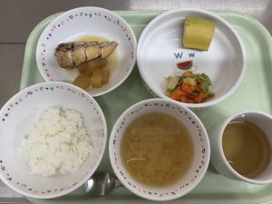 ぶり大根、胡麻和え、味噌汁、ご飯、バナナ