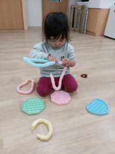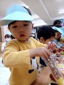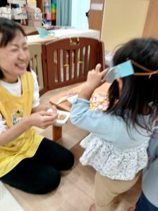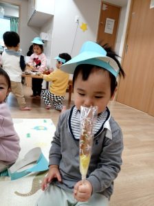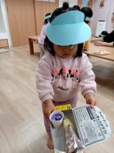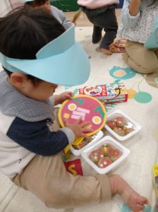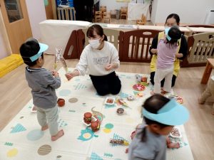 雨でお外に行かれなかったので、今日は「おみせやさんごっこ」を楽しみました!