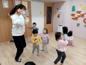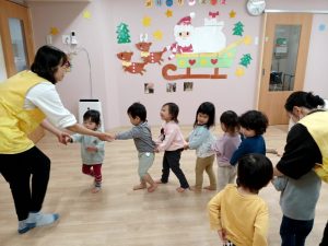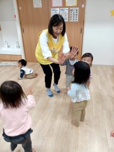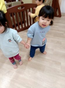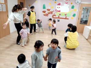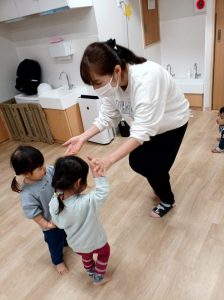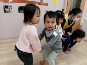 みんなで連結。「ロンド橋わたれ、さあ~渡れ~」