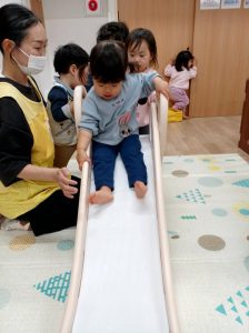 次は滑り台!順番で並ぶ子どもたち!素晴らしいです。