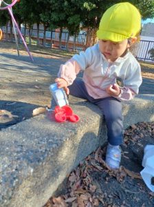 ペットボトルの玩具を引っ張ると「カラカラ音がする~」