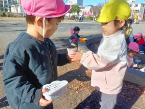 お砂でアイスクリームを作ったり、ケーキ作りを楽しみました。