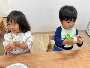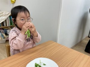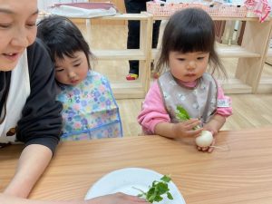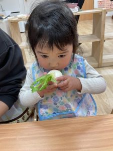 「小さな大根みたい〜」「クンクン、どんな匂いかな」