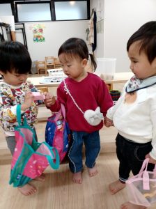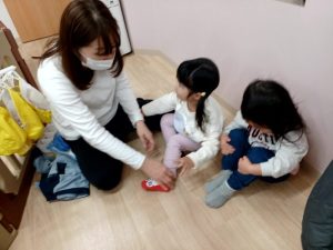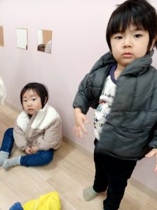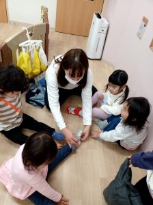 「靴下、上着、帽子は自分で頑張ってみよう♪」「はーい」