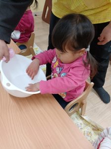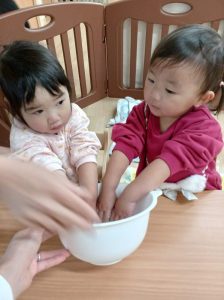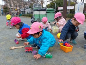 「お手てが寒かった~」と保育園に戻ってきたので・・・