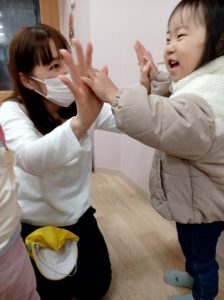 「できたよ!」の子ども達の笑顔にハイタッチ!「やったね!」