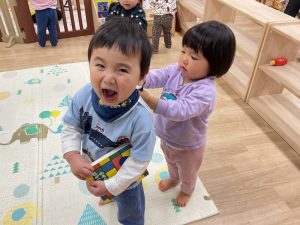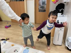 お手を繋いで歩くと楽しいね♪