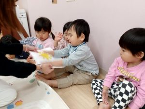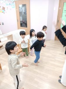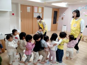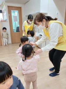次は「ふくすけさーん・・・♪」何度もやっているうちに子ども達もわらべうたを覚えています。