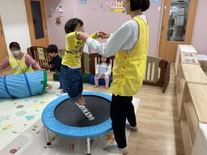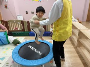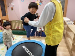 「たかーい!」と大笑い♪みんな体幹が鍛えられてきています!
